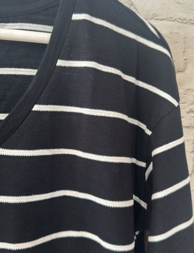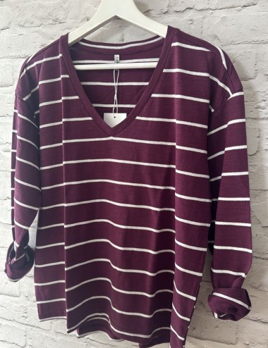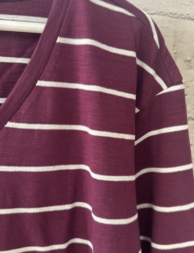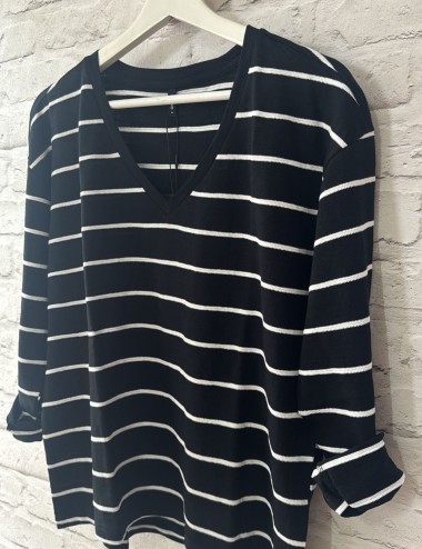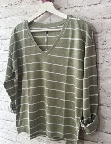 Camiseta fluida de cuello pico, manga larga y rayas anchas.