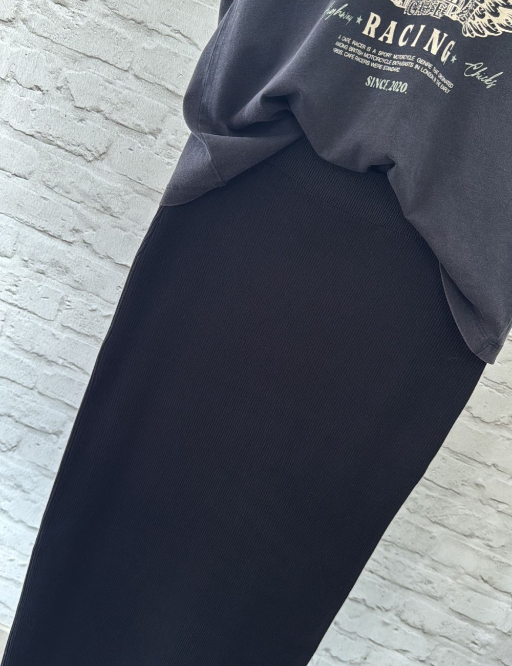 Falda largo midi punto canalé en negro. Cinturilla goma. Un bssic para todo.
